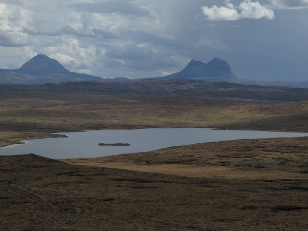 By contrast Assynt, though popular, still exudes this aura of remoteness. Rising so steeply from the surrounding land, the mountains, though not particularly high compared with others in Scotland, dominate the landscape and imprint strongly because their distinctive shapes make them easily recognisable and because they are visible from so many different angles and locations in the area.