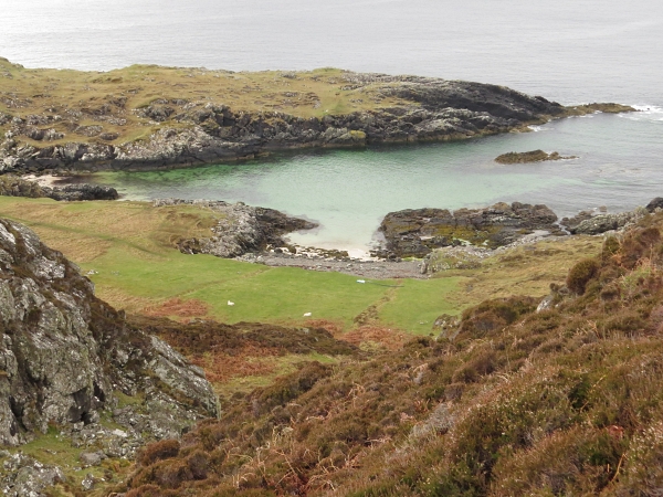 Early in the week we did a round trip across the peat moorland from Stoer lighthouse to Stoer Point, which offers great views of the chunky slabs of the Old Man of Stoer, standing in the seas off the point. For most of the day we were on our own, occasionally meeting couples like ourselves or seeing a group highlighted against the skyline near the trig point. For the rest of the time we were alone in the solitude of the moor but surrounded by the loud sounds of the birds, a mixture of sky larks, meadow pipits and pied wagtails. Apart from skua and some cormorant skimming low across the water there were few seabirds around and the rock ledges, known breeding sites for fulmar and kittiwake, were not yet populated. The overall feeling engendered by this walk was one of contentment and of being in touch with nature not least the lichens and the bog plants of the moor.